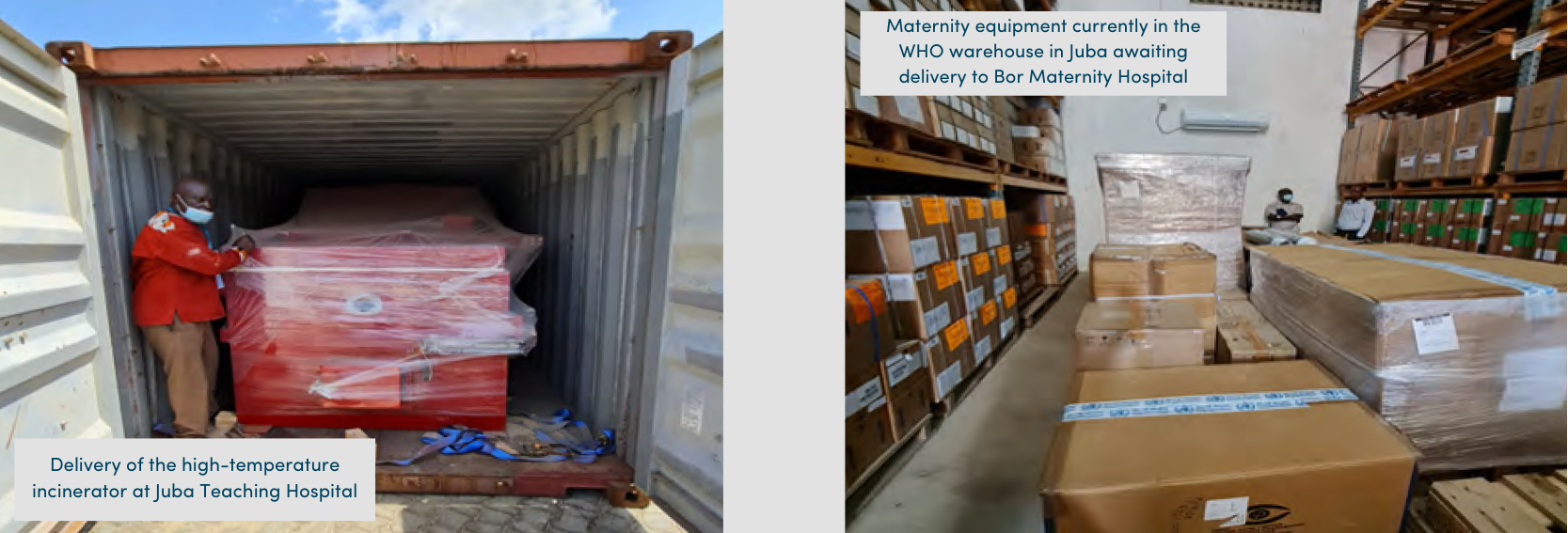 Major health facilities such as Juba Teaching Hospital (which also serves as the national tertiary/referral hospital) and Bor Maternity Centre (which serves a population of over 96 000 of the most vulnerable women and children) were rehabilitated, thus improving availability, quality and maintenance of essential health services. A high-temperature incinerator was installed at Juba Teaching Hospital, enhancing national capacity for infectious and hazardous waste management. The training of around 350 community resource personnel contributed to strengthening community-based surveillance of infectious diseases. Primary care was supported to improve the delivery of essential health services through procurement of core pipeline drugs for health facilities. To ensure longterm capacity development, the outdated curricula of all three university medical schools were revised to form one unified national competency-based medical training curriculum.