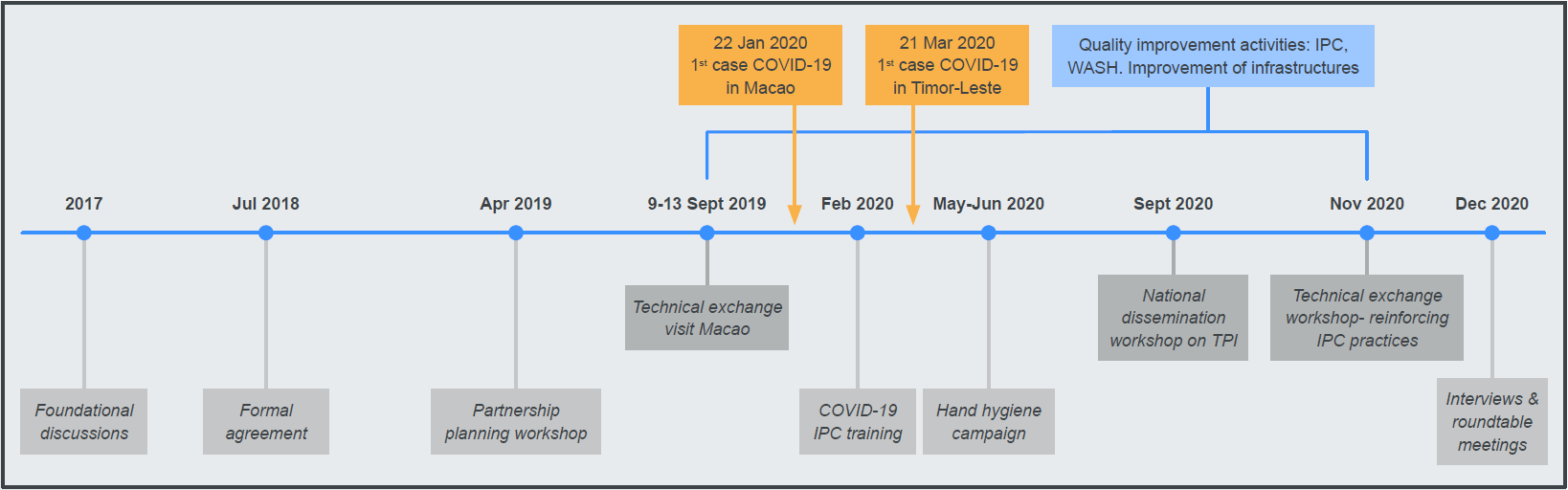 from each other in ways which support long-term, sustainable efforts on quality of care. During 2018–2020 a TPI between Macao Special Administrative Region, China (Macao SAR) and Timor-Leste undertook a programme of activities in order to improve